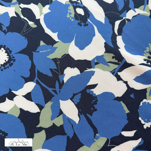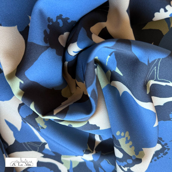 Dit is een geweven, licht-rekbare stof van polyester uit de collectie van À La Ville. Dit merk specialiseert in prachtige, kwalitatieve modestoffen, meestal vervaardigd in Europa.