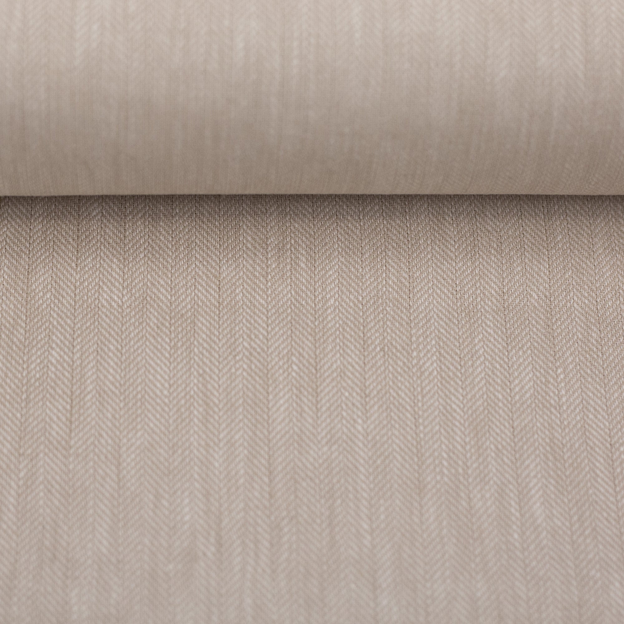 Deze stof heeft een fijn visgraatpatroon van wit en beige.