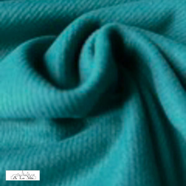 Deze stof is appelblauwzeegroen en komt uit de collectie van À La Ville. Dit merk specialiseert in prachtige, kwalitatieve modestoffen, meestal vervaardigd in Europa.