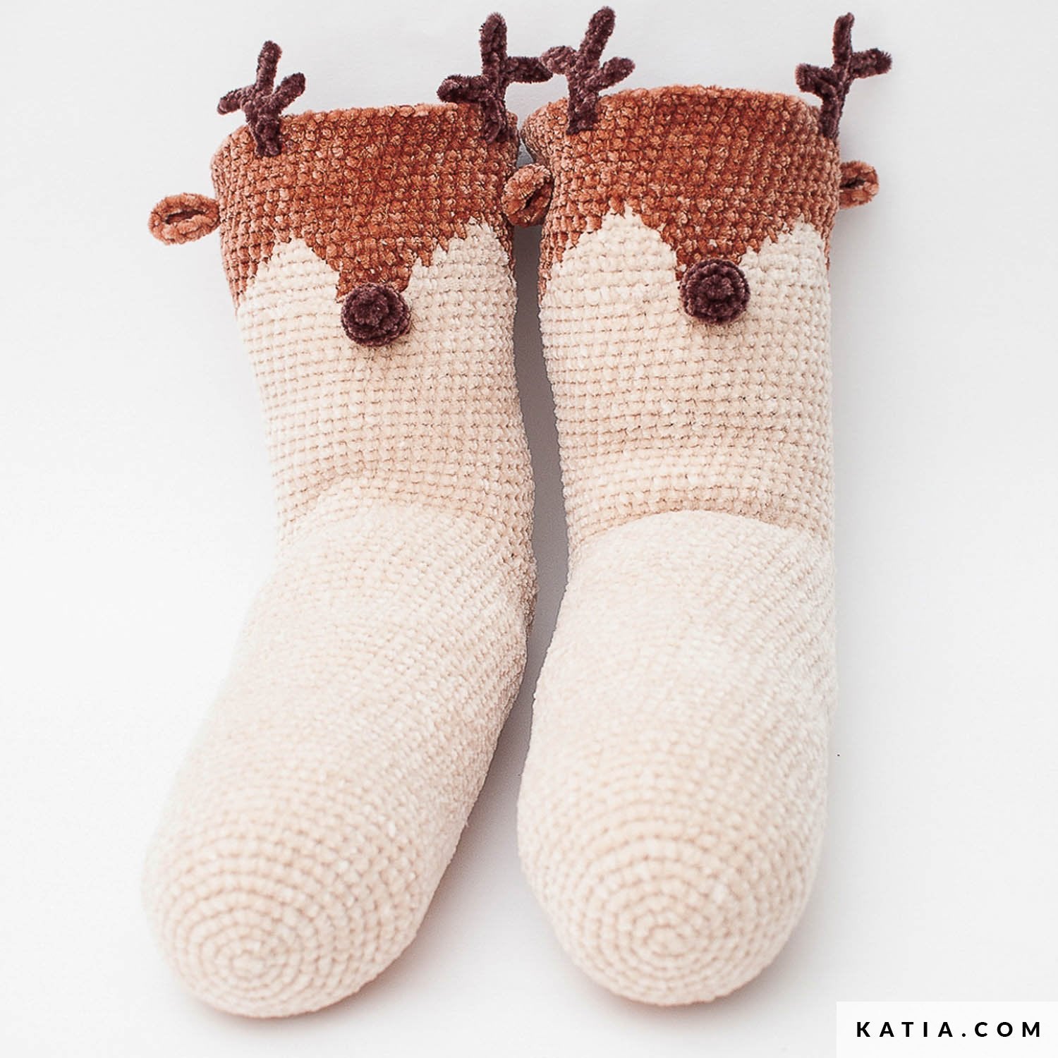 Voeg een vleugje fantasie toe aan je kerst met deze schattige rendier-sokken ontworpen door Gallimelmas! Een feestelijk haakpatroon dat de amigurumi-techniek toepast op sokken. Verwen je voeten met originele sokken. Haak ze met Katia Sockirumi, een chenillegaren met pluche-effect, perfect voor volume en zachtheid. Geniet van het proces met het PDF-patroon en de bijgeleverde ondersteunende video’s.
