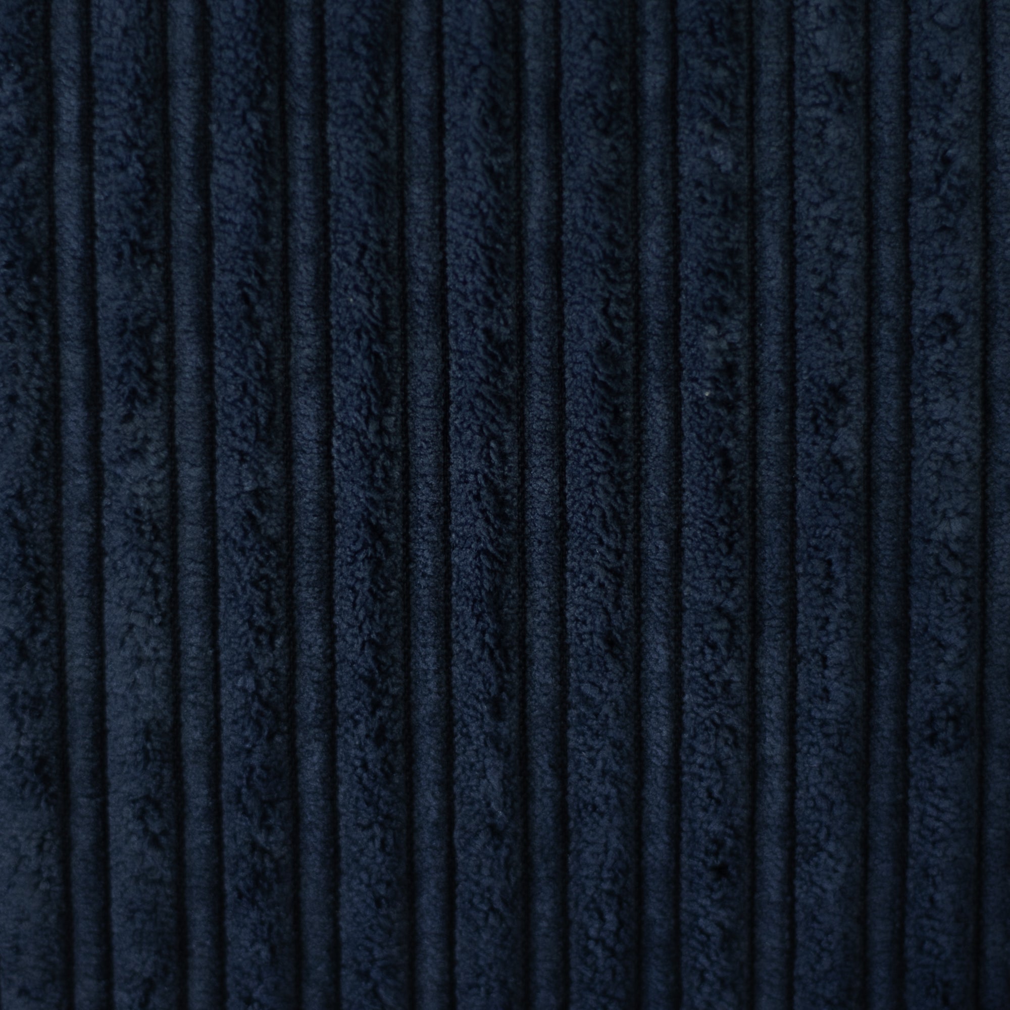 Deze stof heeft een lichte, crèmekleurige sherpa en blauwe ribfluweel.