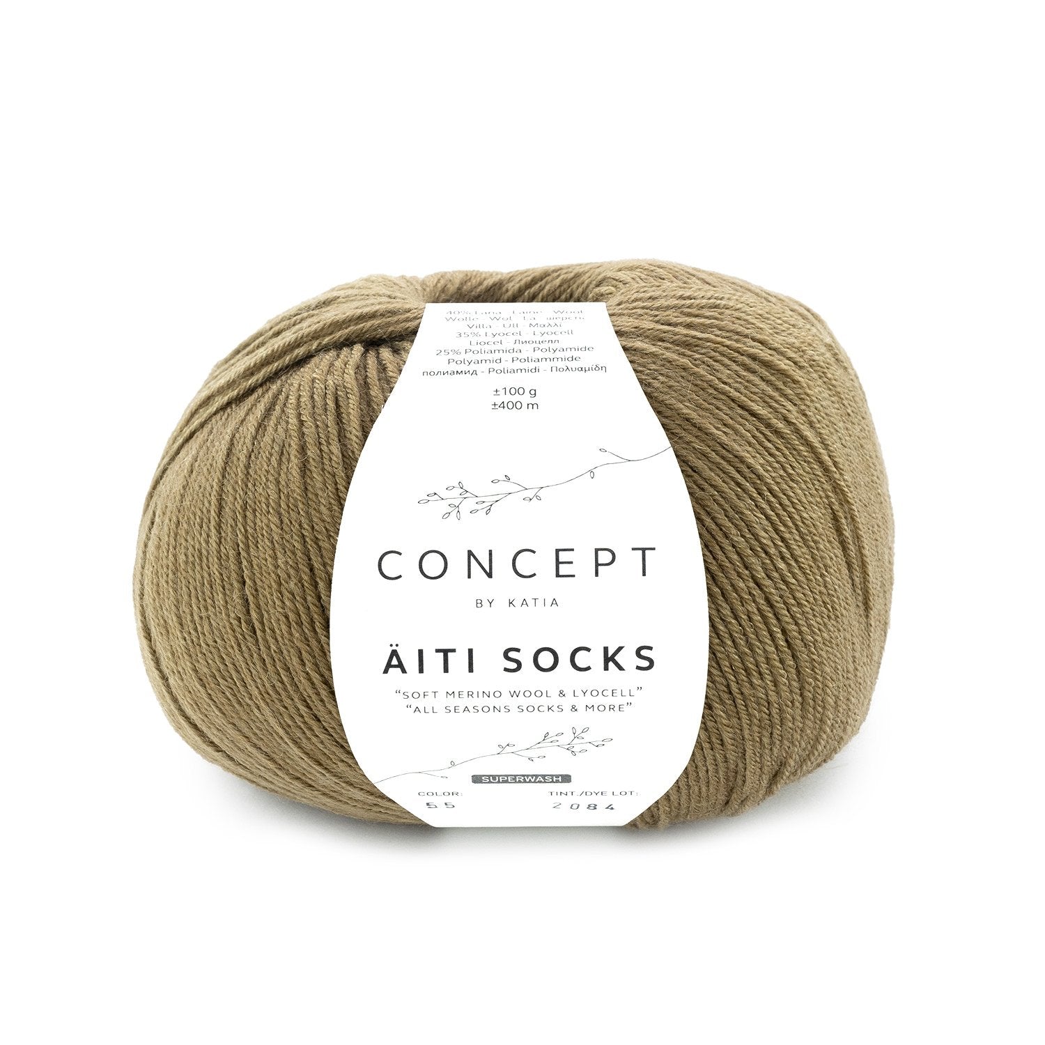 Äiti Socks van Concept by Katia is het nieuwe All Seasons sokkengaren in merinowol en lyocell, verkrijgbaar in effen kleuren en verschillende prints. Perfect voor elk seizoen, deze garens inspireren je om sokken en nog veel meer te breien. Ontdek de zachtheid en veelzijdigheid van Äiti Socks! Äiti Socks van Concept by Katia is het nieuwe all-seasons sokkengaren van merinowol en lyocell, verkrijgbaar in effen kleuren en verschillende patroonvarianten. Dit garen is perfect voor elk seizoen en zal je inspireren om sokken en nog veel meer te breien. Ontdek de zachtheid en veelzijdigheid van Äiti Socks!