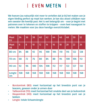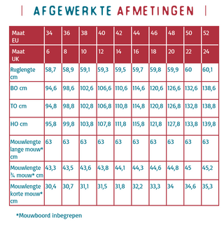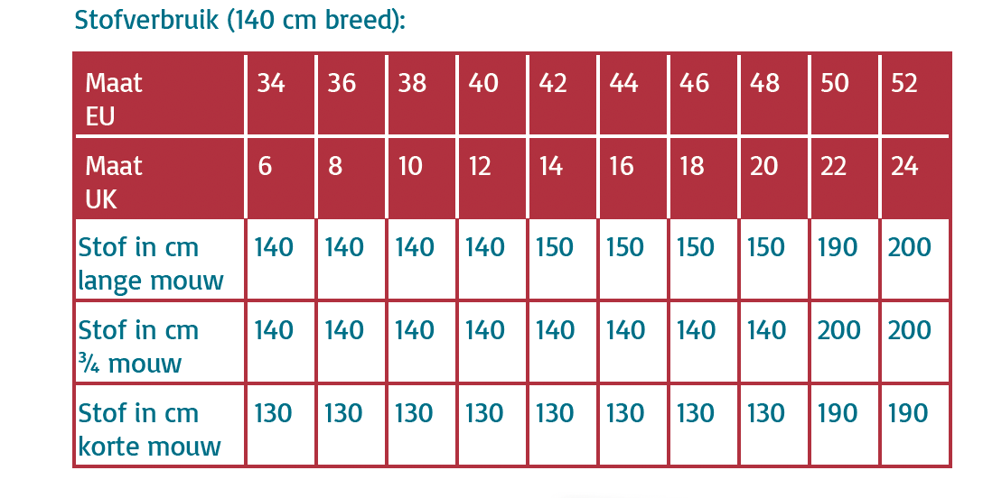 De naadwaarden zijn inbegrepen in de patroondelen.