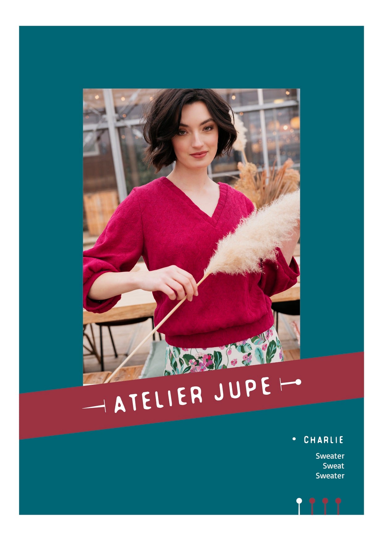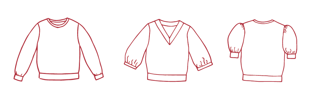 Charlie sweaterpatroon heeft verschillende mogelijkheden zodat jij hem helemaal naar je hand kan zetten! Je kan kiezen tussen een ronde hals met fijne boord of een V-uitsnijding met een iets bredere boord. Beslis ook zelf welke mouw je erbij wil! Lang, brede driekwart met fijne boord of kort en gefronst, de keuze is aan jou!