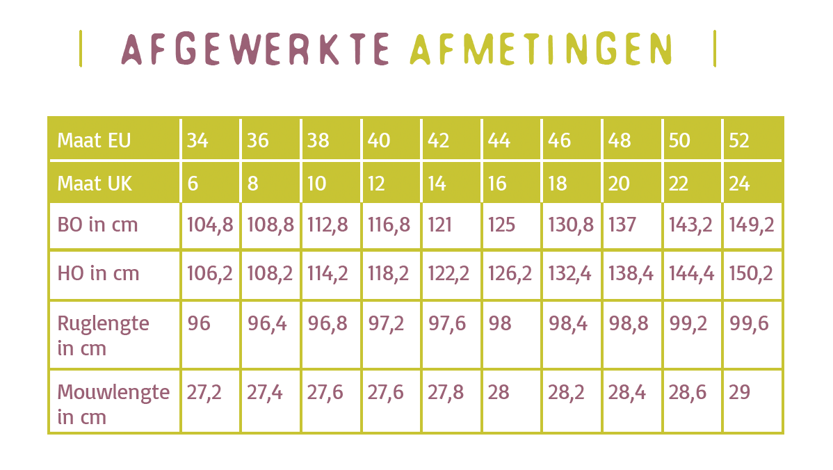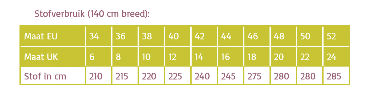 De naadwaarden zijn inbegrepen in de patroondelen.