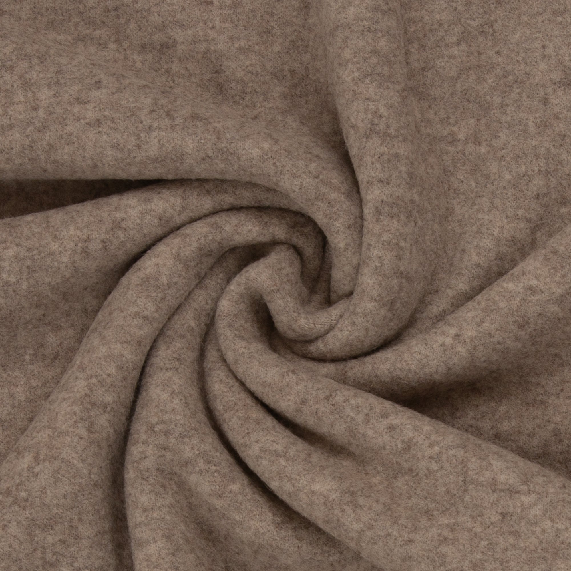 Dit is een gebreide (rekbaar) stof van 100% merinowol. De stof rekt goed mee en voelt zacht aan. De stof heeft de dikte van een klassieke fleecestof. De stof is pluizig.