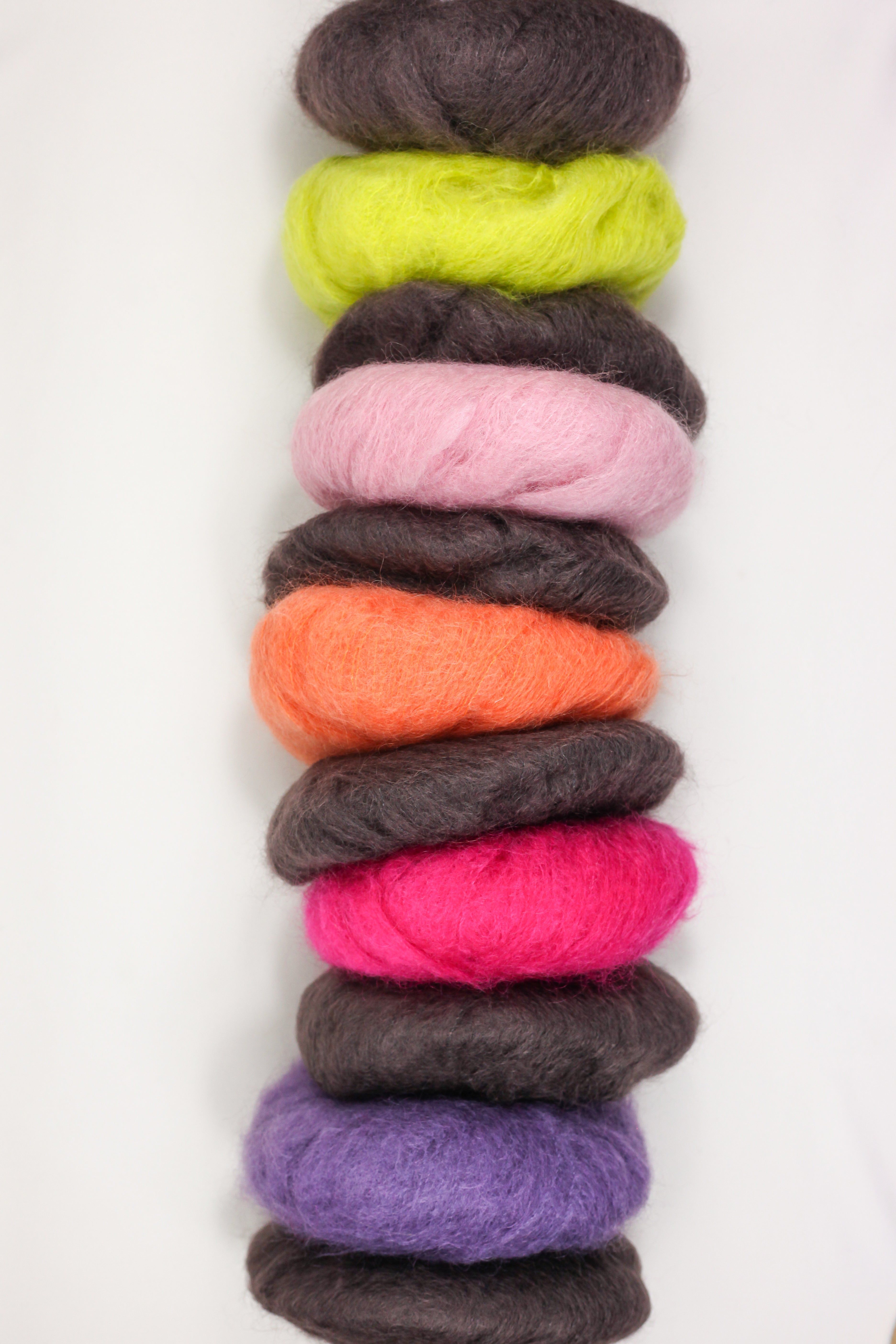 • INGENUA in een winterse kleurencombo, geselecteerd door Sis: de basis is een koel donkerbruin, met 5 verschillende strepen in geel, lichtroze, oranje, fuchsia en paars.