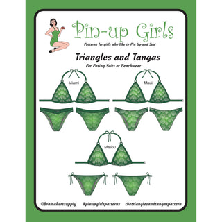 Pin-up Girls is trots om deze collectie Triangles Tangas Bikini-patronen te presenteren. De triangeltops en tangabroekjes zijn ideaal als strandkleding, badkleding of poseerkostuums voor fitnesswedstrijden. Alle modellen zijn zonder beugel en gebruiken diverse constructiemethoden voor ultieme creatieve vrijheid bij het naaien.