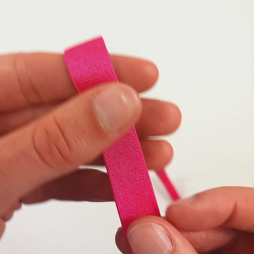 Deze schouderband is 15mm breed. De schouderband is glanzend aan de voorkant en mat en zacht aan de achterkant.